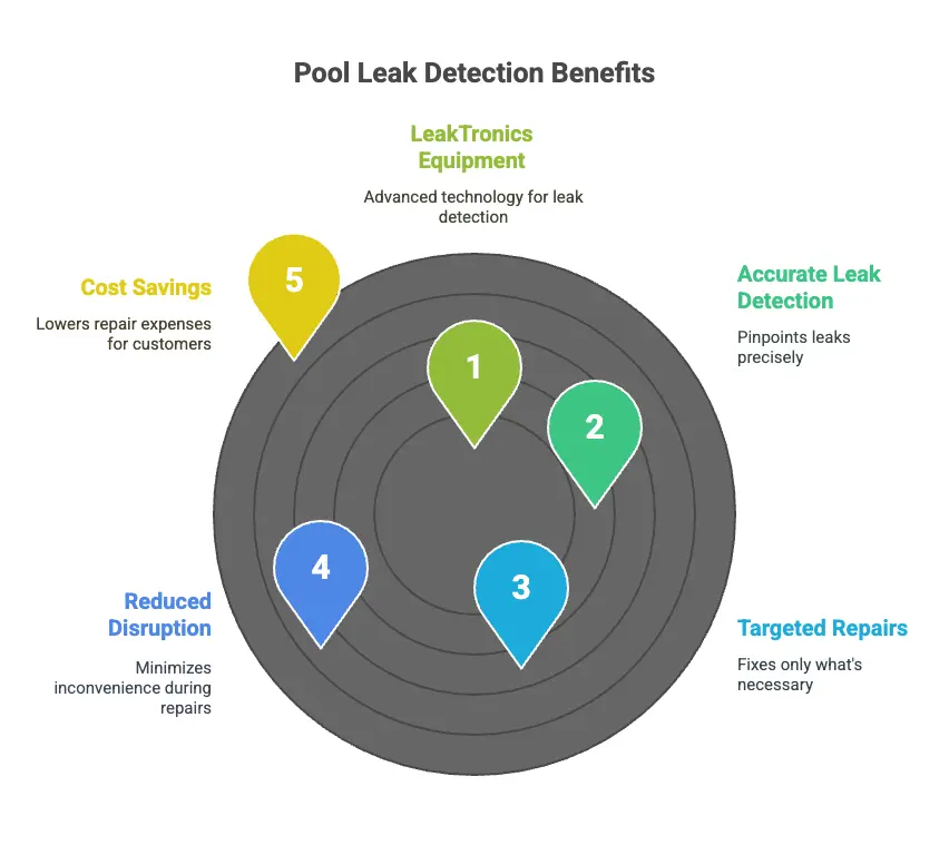 Pool leaks are sneaky—they can waste thousands of gallons of water, increase your bills, and damage your property. Professional pool leak detection uses advanced tools to find leaks quickly and accurately. At Optimal Pool Leak Detection, we use LeakTronics equipment, which can “hear” leaks in pipes, walls, and liners—even under concrete.