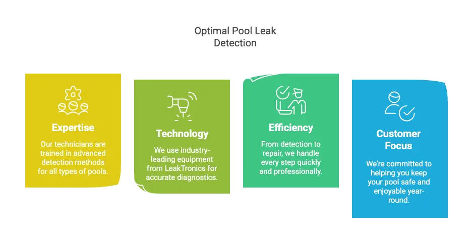 Rather than spending more on chemicals, address the root cause by identifying and repairing the leak. At Optimal Pool Leak Detection, we help restore balance so you can enjoy crystal-clear water again.