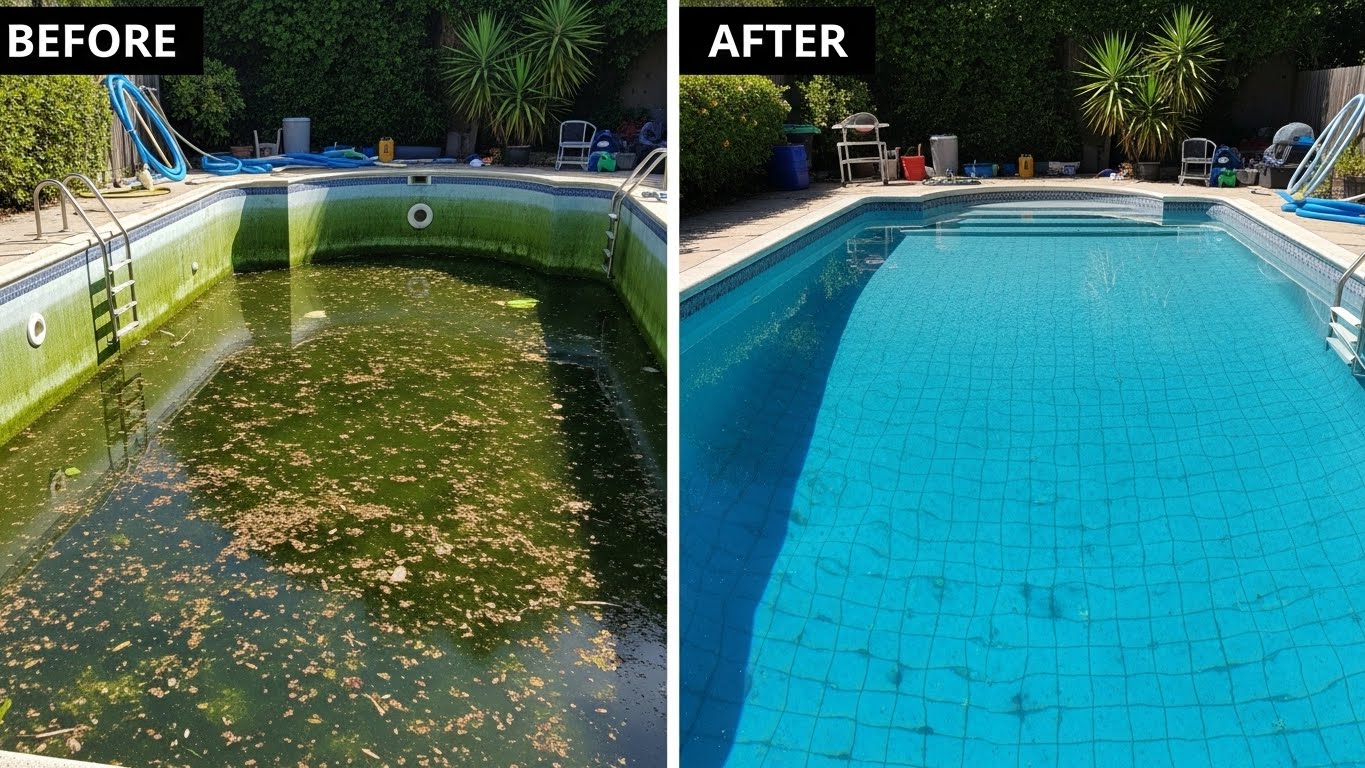 A “green pool” is a common term used to describe pool water that has been affected by algae growth. Algae typically develops when pool water chemistry becomes unbalanced—most often due to insufficient chlorine levels. While algae itself is not toxic, it can create serious problems if left untreated.
